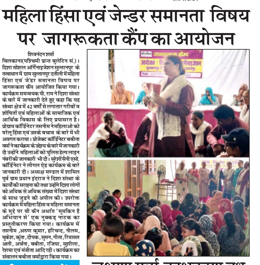 On 29 September 2025, Disha Social Organisation held an awareness camp on gender equality and violence against women in Sultanpur Datauli village.